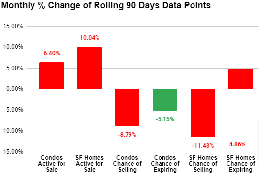 This is the supply side of the equation with active inventory for sale increasing for both condos by 97 units, and single family homes by 24 units.